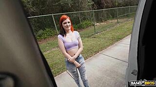 tiny redhead teen trades quick fuck for cash on a wild bus ride
