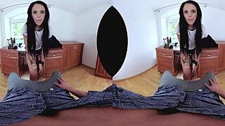 The Spanish latina with long hair gets a haircut in doggystyle and riding