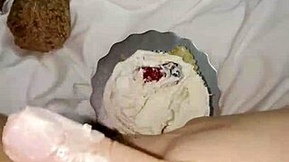 Babe Fingers Pussy with Food in Nightie Explosive Close-Up Orgasm