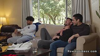 ebony hunks intensely assfuck in interracial group blowjob session