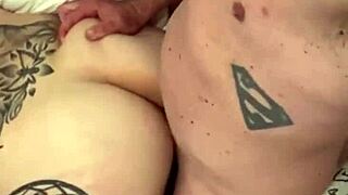 xxxhotwife, the tattooed swinger, rides monster cock in cowgirl with her old husband watching