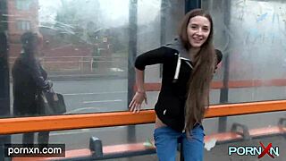 Pornxn Horny Skinny Leyla Flashes Shaved Pussy In Public