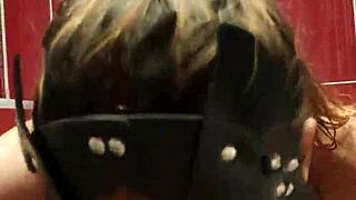 Masked Brunette Gags On Cock In Bathroom Doggy Style POV Blowjob Leading To Cumshot