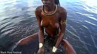 That hot skinny African village girl is walking naked, probably hunting for some cock