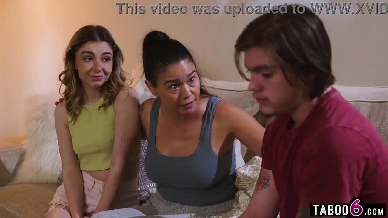 Hey, wanna see how stepson fucks big tits stepmom and stepdaughter during movie night?
