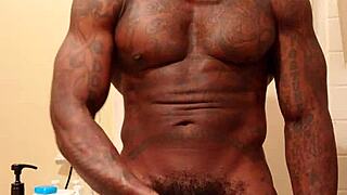 Black shemale with big cock indulges in chocolate and solo action
